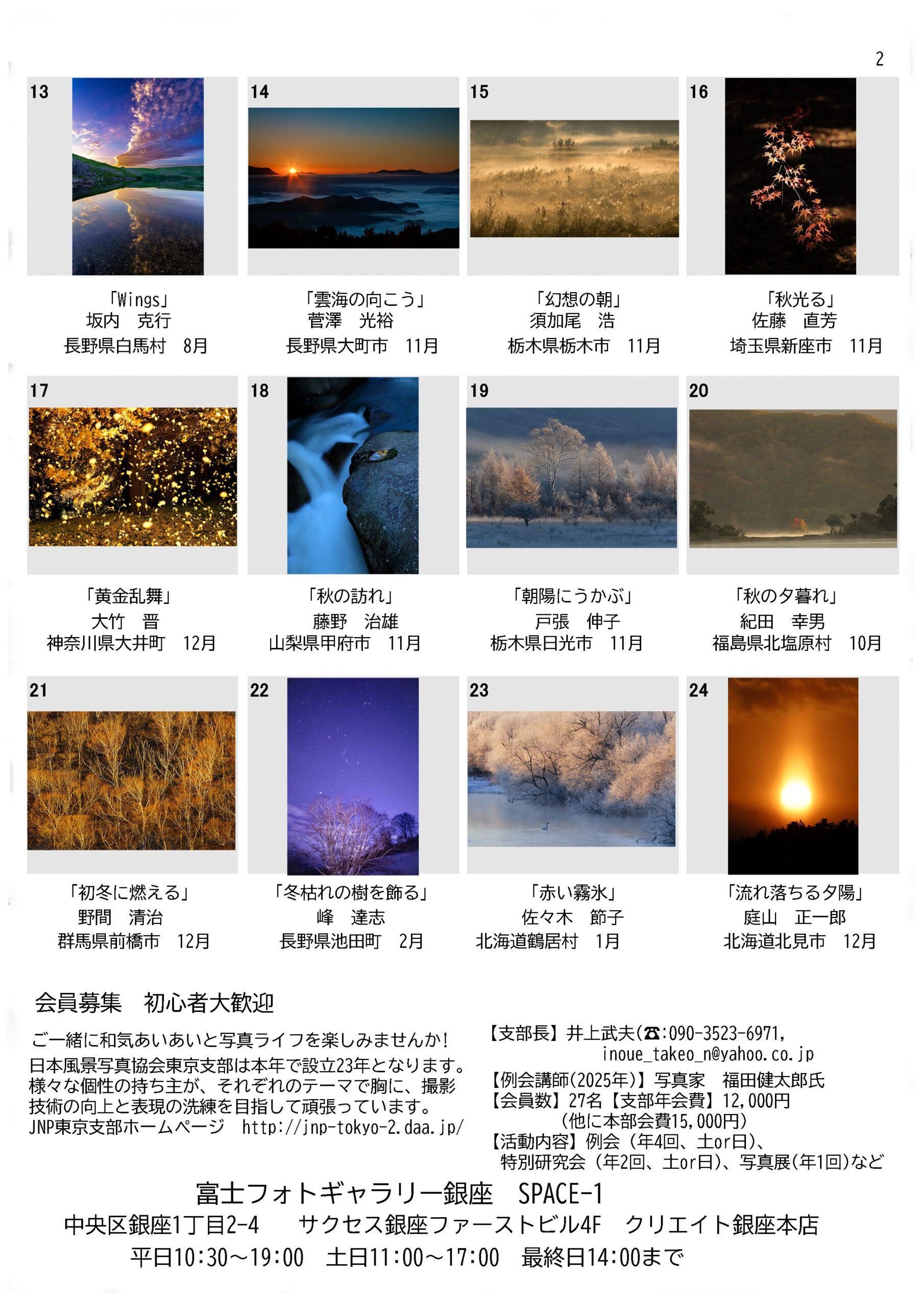 富士フォトギャラリー銀座 スペースー1 指導:写真家 福田健太郎
